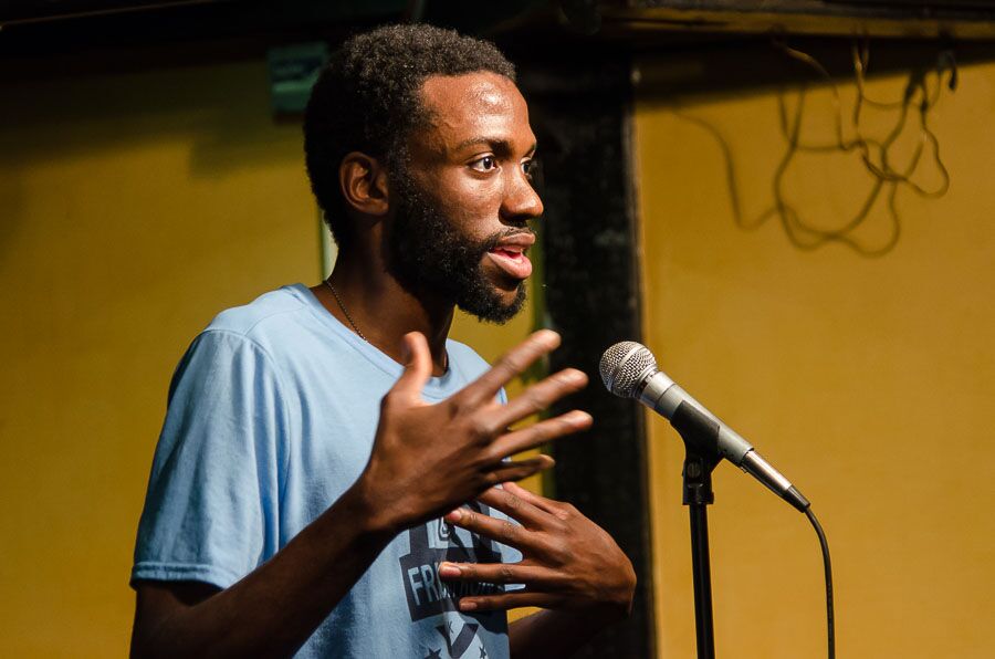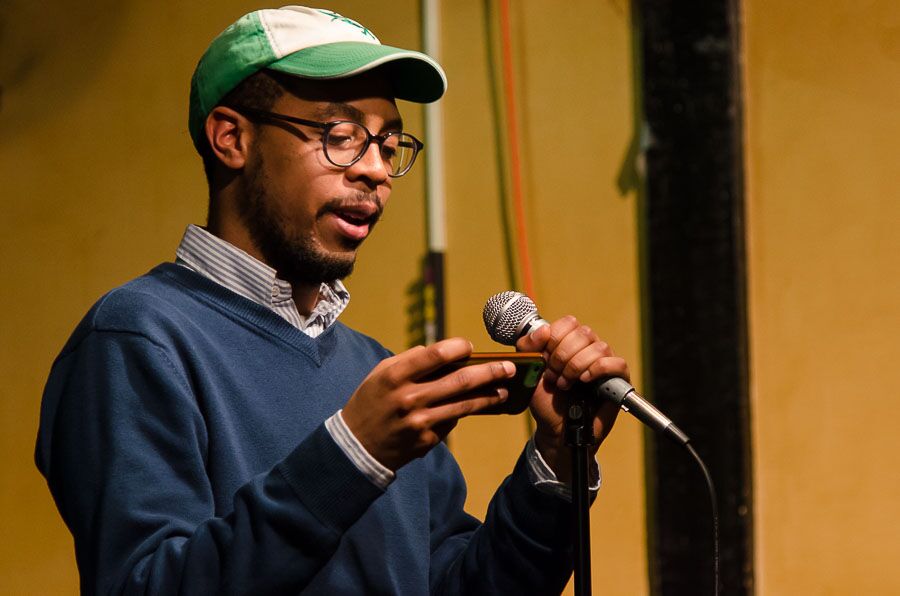 - Stephen Earl McCoy performs in his first poetry slam. Photo by Rich Beaubien.