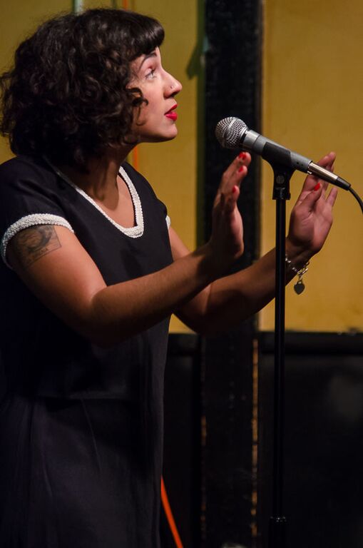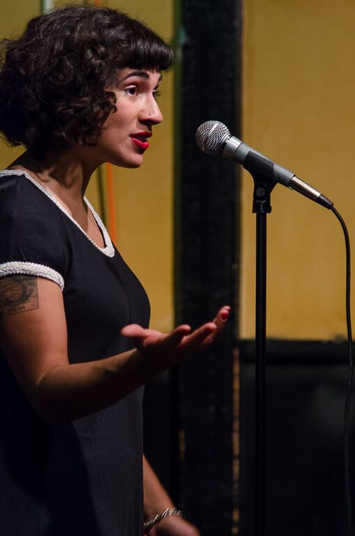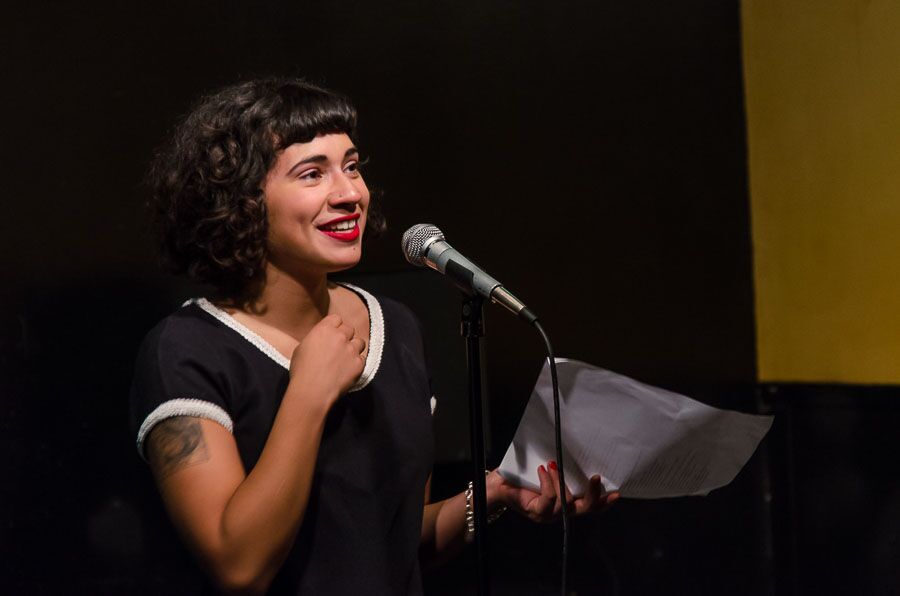 - Melissa Lozada-Oliva, the night’s featured poet, brings new work to the stage. Photo by Rich Beaubien.